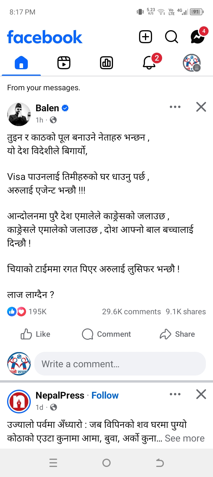 सामाजिक सञ्जाल फेसबुकमार्फत जेनजी आन्दोलनमा आफूमाथि विभिन्न आरोप लागेपछि उनले त्यसमाथि आक्रोश पोखेका हुन्।